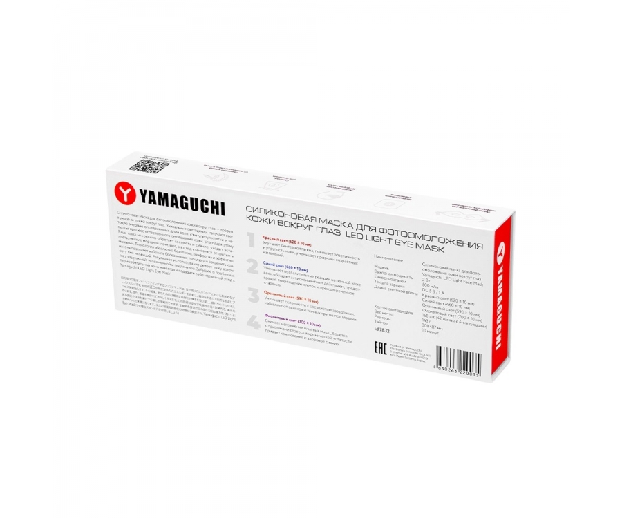Силиконовая маска для фотоомоложения кожи вокруг глаз Yamaguchi LED Light Eye Mask — это продуманный прибор для деликатного ухода за чувствительной периорбитальной зоной. Маска воздействует светодиодами четырёх спектров — красным, оранжевым, синим и фиолетовым — запуская естественные процессы омоложения на клеточном уровне.